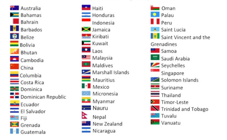 Folgende Nationalitäten können mit einem e-Visa einreisen: